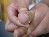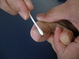 | 綿棒で表面のふき取り | ブレイスのサイズ決定 | 仮置き |
