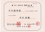 | B/S BRACE取り扱い証 平成14年2月29日取得 |